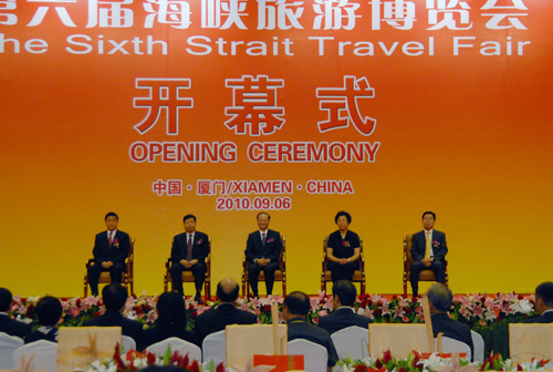 国家旅游局局长、海峡两岸旅游交流协会会长邵琪伟宣布第六届海峡旅游博览会开幕。国家旅游局副局长、海峡两岸旅游交流协会执行会长杜江,福建省政协主席梁绮萍,福建省人大常委会党组书记、副主任刘德章,中共福建省委常委、常务副省长张昌平等出席了开幕式。开幕式由福建省副省长洪捷序主持。